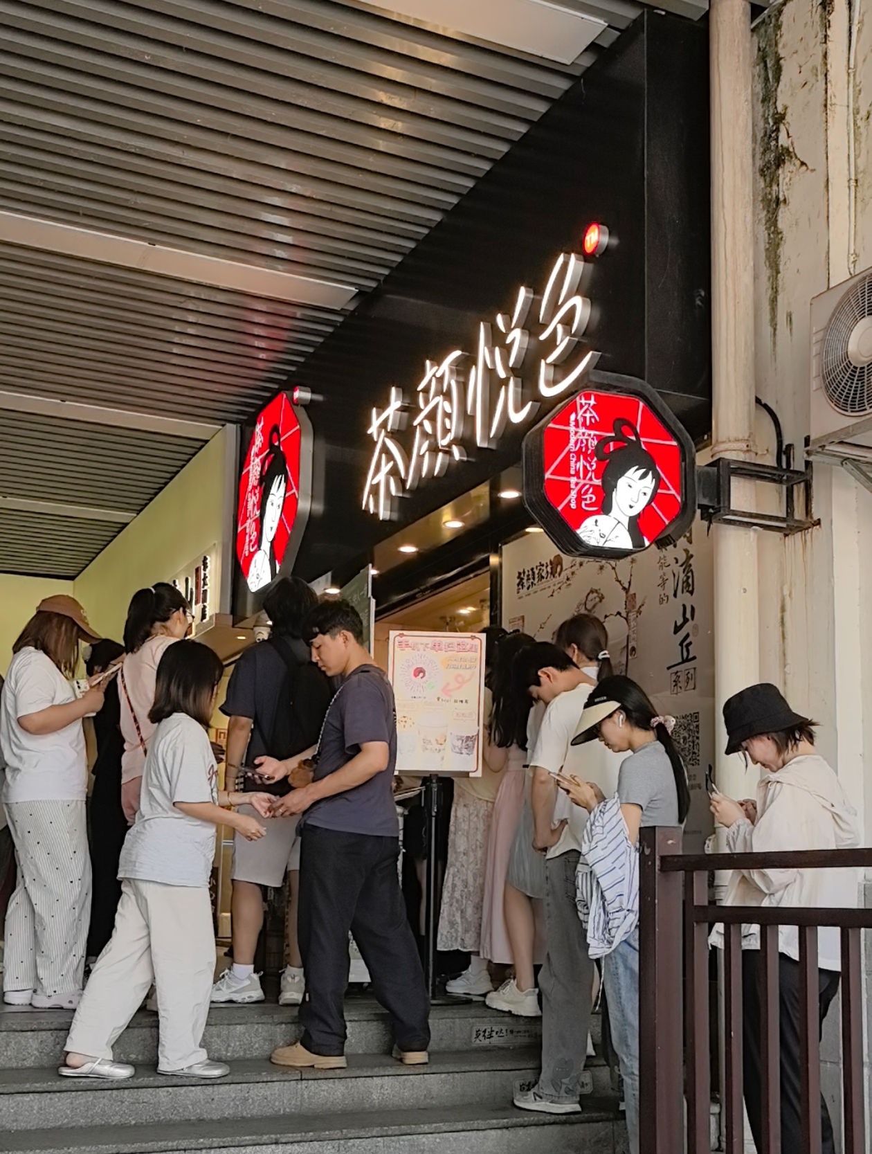 记者注意到,东大门下的茶颜悦色奶茶店也有不少游客排队等待。