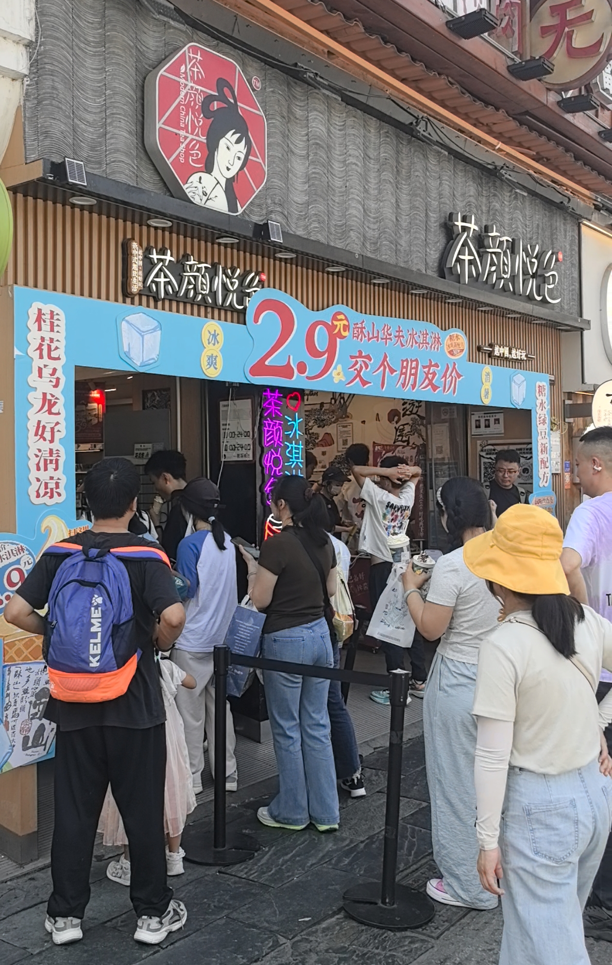 从广西梧州来的凌同学告诉记者,“排队买茶颜悦色的奶茶,排老久了,人很多,密密麻麻的,到哪里都需要排队。”