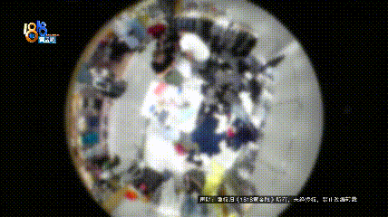 监控录像显示,男子把一头的衣服都扒拉掉以后,又沿着另一头去扒拉衣服。