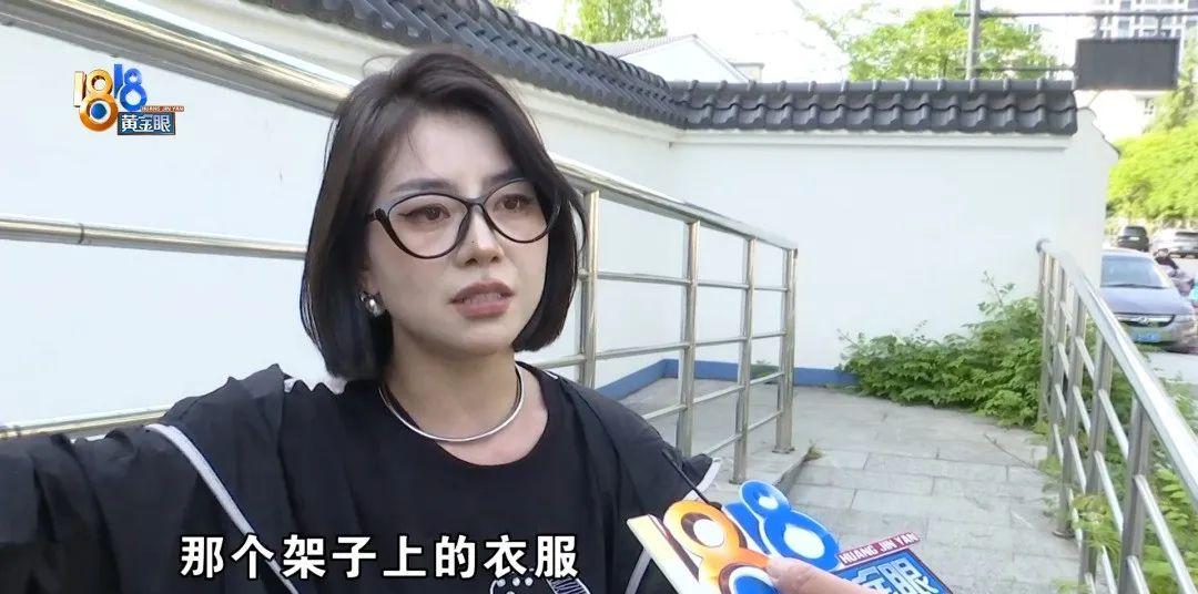 陆女士:那个架子上的衣服,全部给我扔在地上,乱七八糟的。我们家小姑娘想去拿那个衣服头,直接一扫这样子,把小女孩推到后面去了。