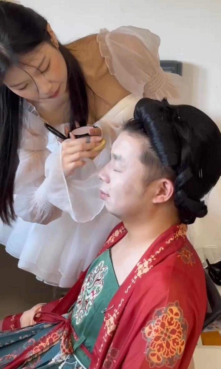 “每个NPC角色都有不同的妆容,基本上都是自己化的,有的光化妆就要两个小时左右。”化妆师陈莹介绍,比如唐朝人物,化妆的话一般底妆都是白色的,然后再作修饰。