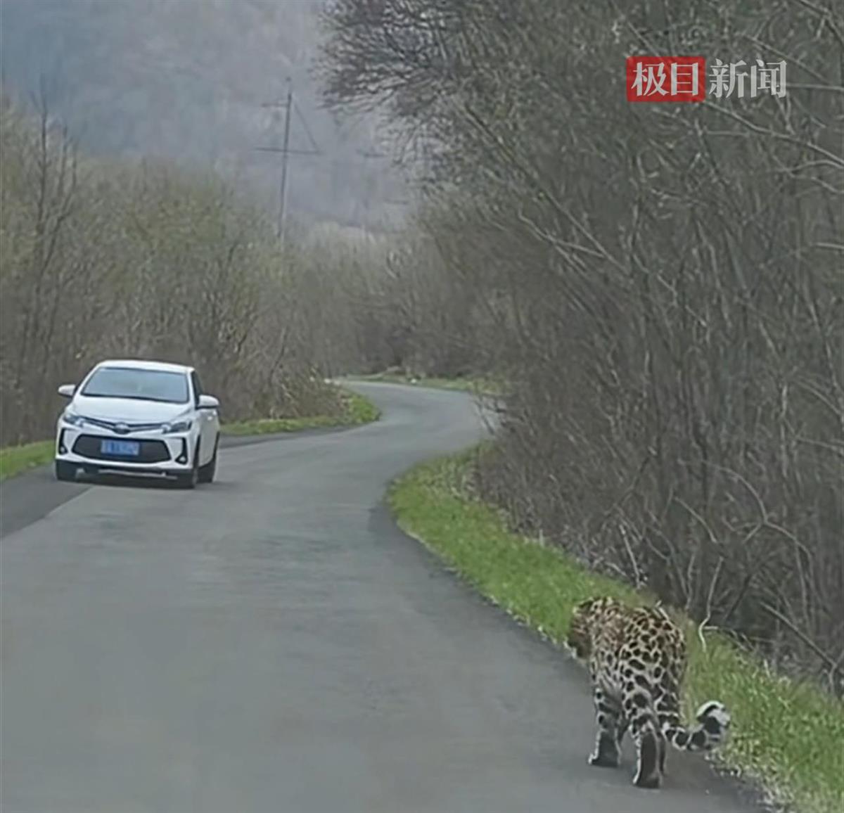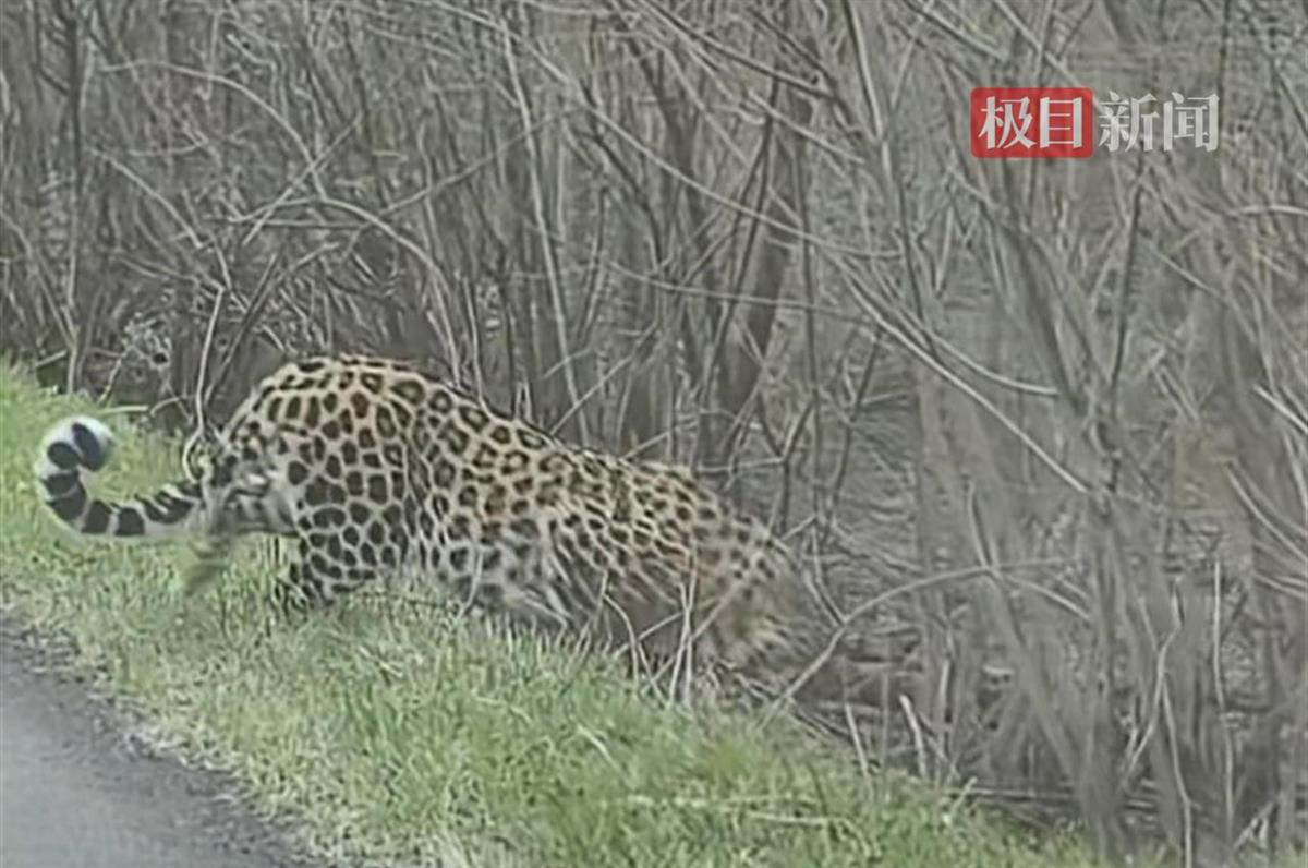 乡村道路出现野生东北豹