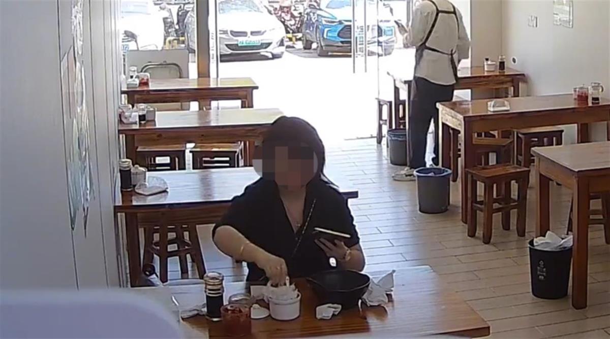 视频显示,4月29日,女子来到一家餐馆点餐,用餐后她将擦鼻涕的纸扔进桌上的碗和调料罐里,还多抽了几张纸塞进罐中,不断按压。