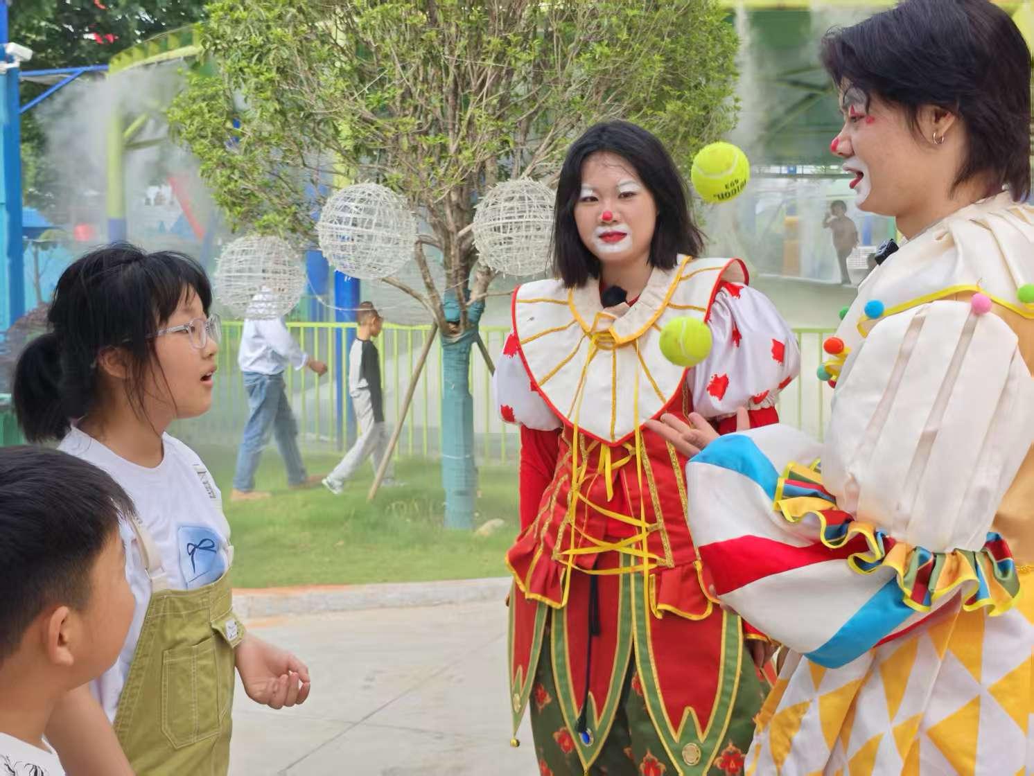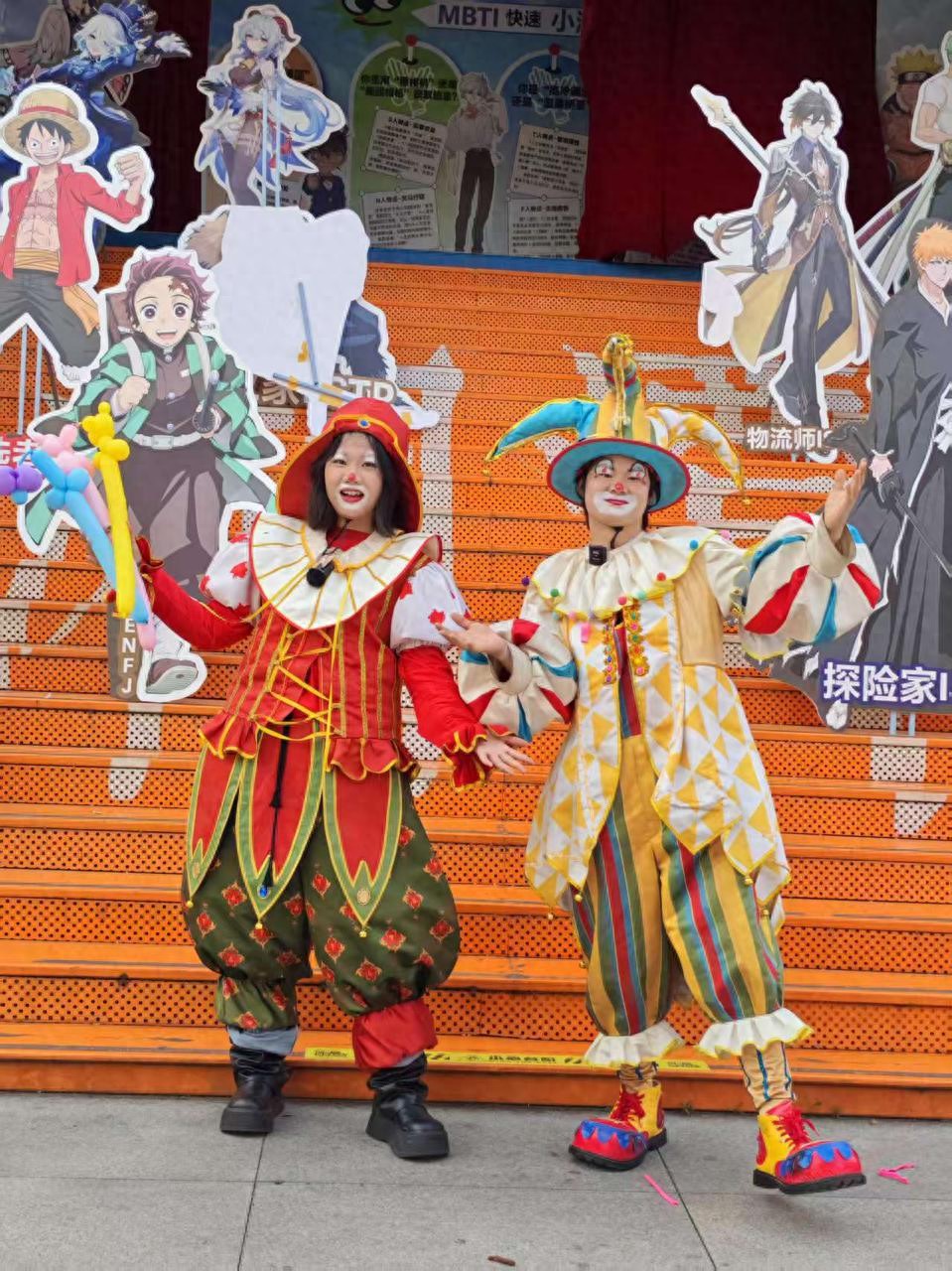 “我以前是踩高跷的,后来因为人员变动,才开始学小丑表演。”