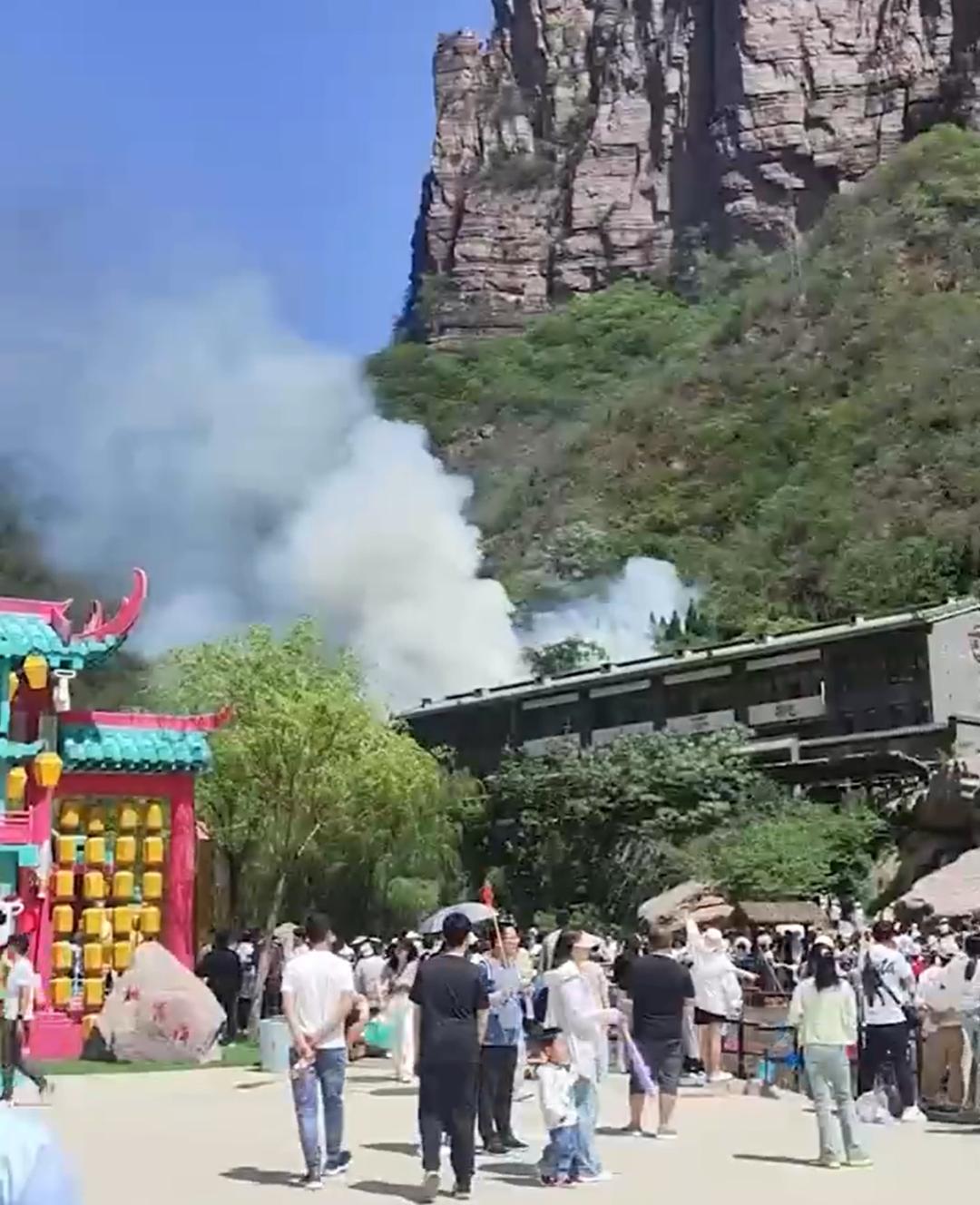 5月1日,多名游客称在河南新乡宝泉大峡谷游玩时,景区内发生火灾。