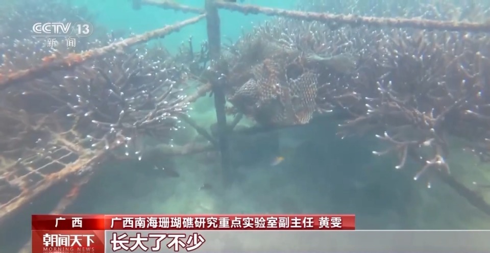 黄雯:2023年底种下去的,长大了不少,这种鹿角珊瑚已经长了有二十几倍了,哪怕是慢一点的块状珊瑚,也差不多长得两倍左右了。