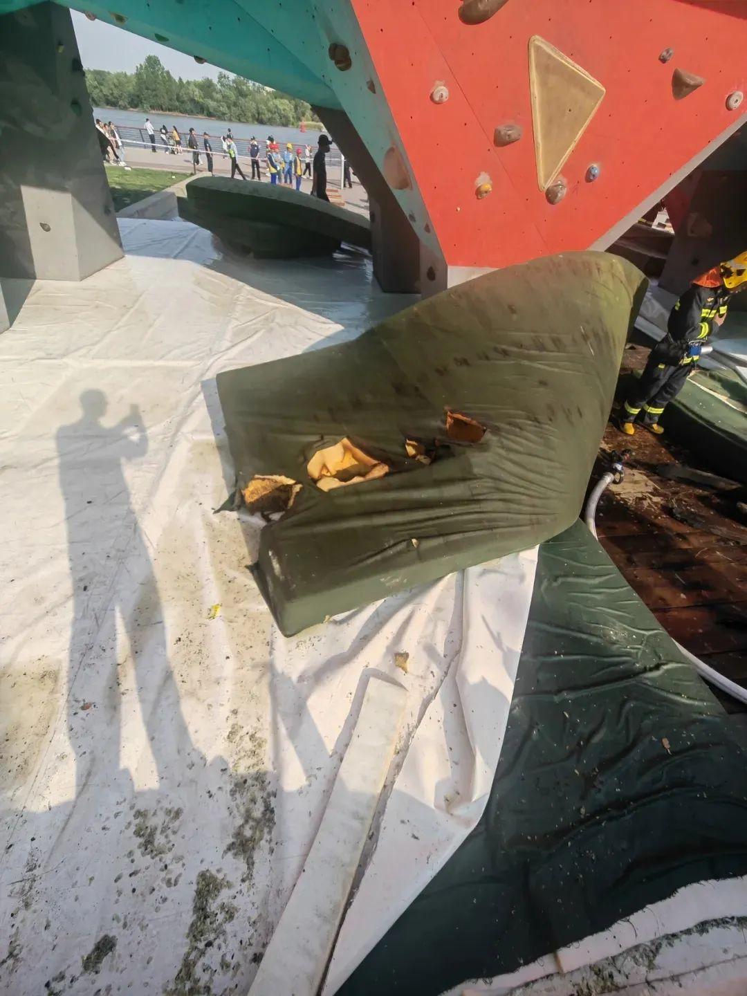据悉,涉事男子当天在滨江游玩,其间,他坐在攀岩墙边的木地板上抽烟休息,随手将烟头丢到木地板的缝隙中,并未意识到事情的严重性。