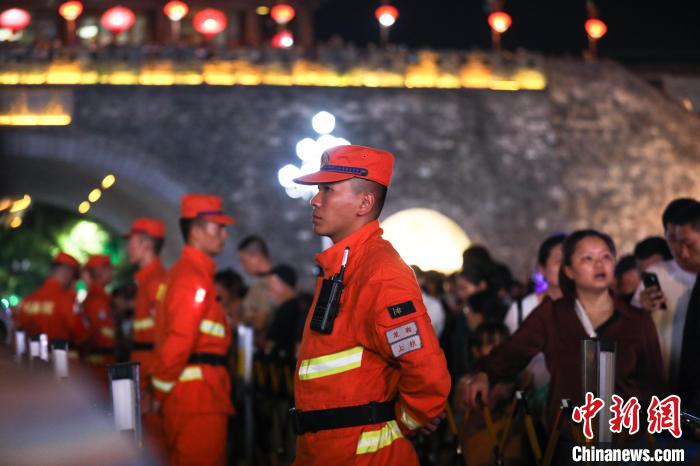 消防员重点针对店头街、卧龙书院等木质结构密集、人流集中的重点区域加强防火巡查,确保古建筑安全,同时在夜间文旅活动期间,安排机动力量备勤,随时应对突发火情或应急事件。