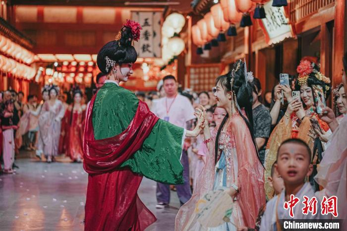 图为长安十二时辰主题街区内举行的主题活动。 滕瀚 摄
