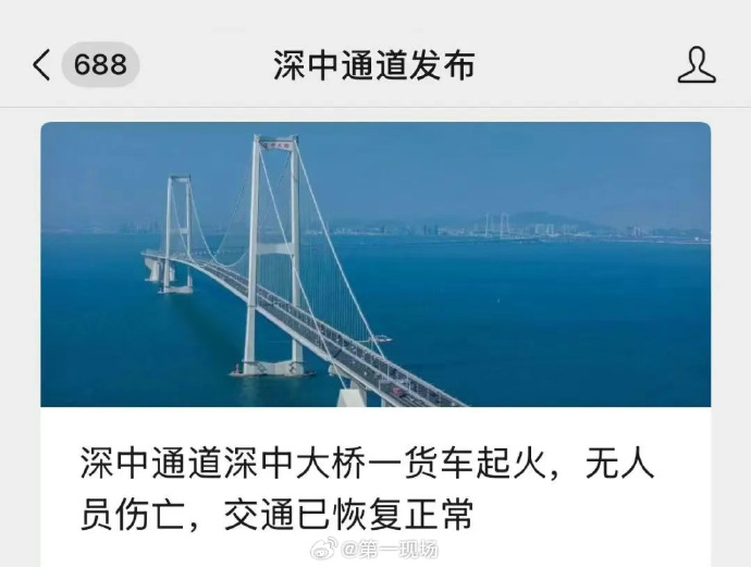 9时35分,现场明火已扑灭,无人员伤亡。期间,因灭火工作需要,双向车道交通临时中断约20分钟。目前,事故车辆已拖离现场,起火原因待进一步调查核实,现场交通已恢复正常。经初步评估,本次起火事件未对主缆等主要受力构件造成影响。同时,管理中心将组织专业单位对桥梁相关状况进行勘验。