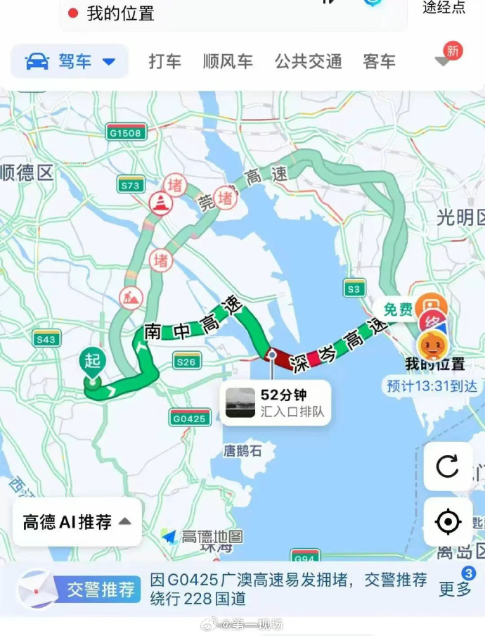 深中通道温馨提示:五一期间,深中通道车流保持高位运行,建议司乘人员出行前及时查询路况信息,可选择绕行虎门大桥、南沙大桥或广澳高速-南沙港快速等路线。