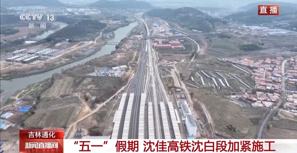沈佳高铁,是连接辽宁沈阳与黑龙江佳木斯的高速铁路,是我国“八纵八横”高速铁路主通道的区域连接线。其中,沈阳—长白山段作为起始段,设计时速350公里。“五一”假期,吉林通化的沈白段建设现场,1000多名建设者坚守在工程建设一线。