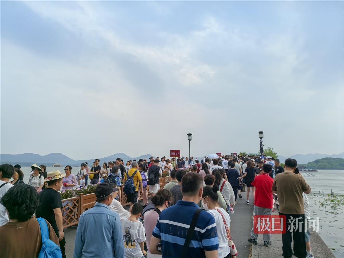 5月2日,杭州西湖景区接待游客95.49万人次,创五一假期单日历史新高。