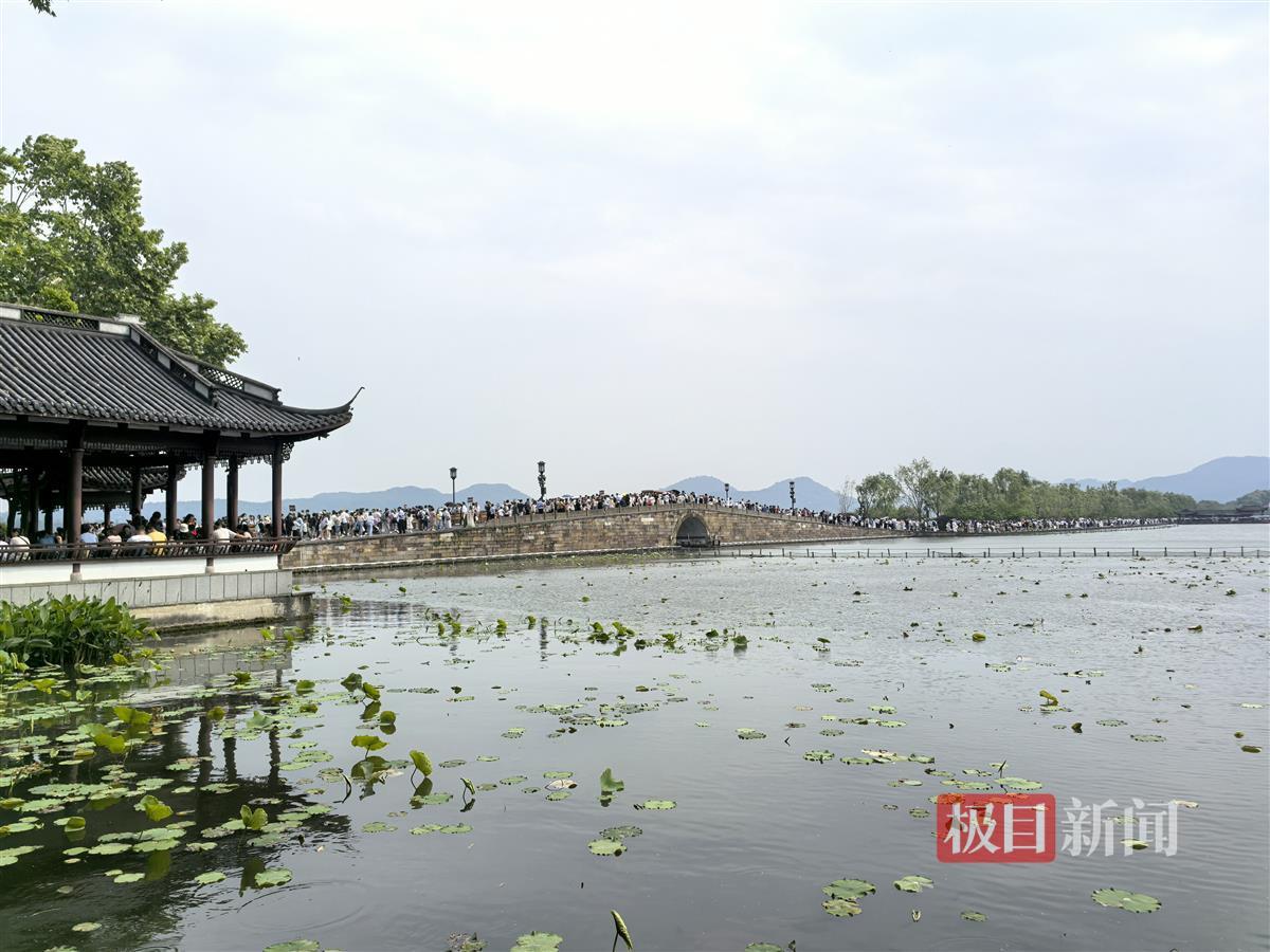 5月3日下午1时许,极目新闻记者在西湖景区看到,尽管气温达到30摄氏度,仍有大量游客在西湖各景点游览,知名景点断桥上更是挤满了游客,进出断桥的通道实行了分流。现场工作人员称,前两天游客更多,当天的游客量大概只有前一天的四分之三。
