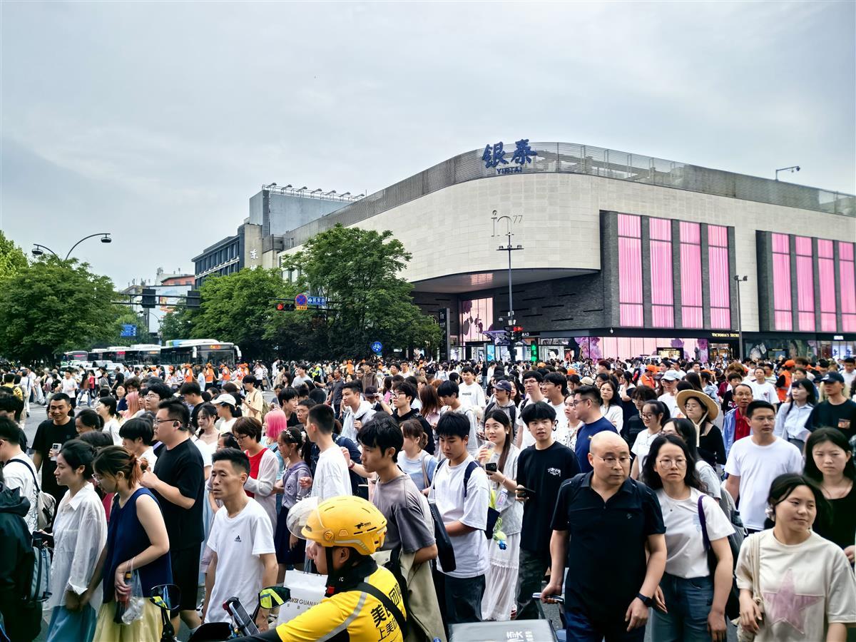 5月3日下午5时许,西湖湖滨步行街外路口正在过街的人群