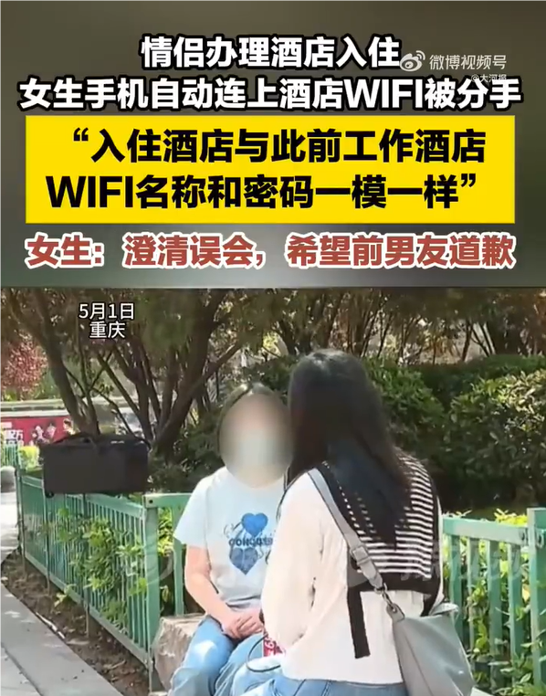 近日,重庆。一对情侣酒店办理入住时,女生手机自动连上酒店WIFI,被男友怀疑清白,两人分手。#女生手机自动连上酒店WIFI被分手冲上热搜第一,引发热议。