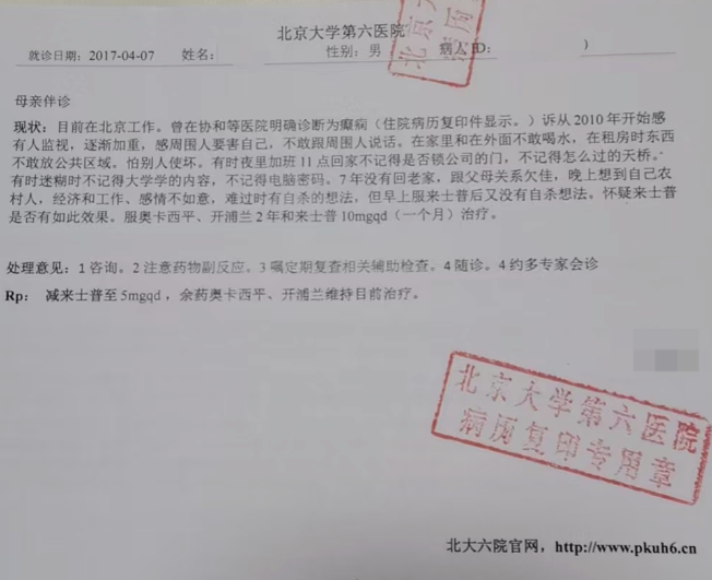 据红星新闻此前报道,李某母亲称,李某从6岁开始患有癫痫,已治疗二十余年,近年来还诊断出癫痫性精神障碍、抑郁症、精神分裂。