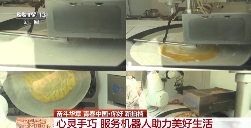 据记者了解,这款煎饼馃子机器人是全国首批获得食品经营许可证的餐饮机器人。它所有零部件均为国产,占地面积仅2平方米,能够做到全天候24小时不间断营业。而看似简单的摊煎饼工序,实则却暗藏着许多硬核科技。