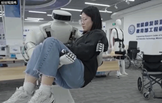 在工程师的控制下,机器人伸出它超长的双臂,稳稳地将一名学生从床上以“公主抱”的姿态缓缓抱起,并将她转移到旁边的轮椅处,放置在轮椅上。将人抱起是一个养老的典型场景,要实现这样稳定和安全的全流程操作,团队需要进行软硬件的整体创新。