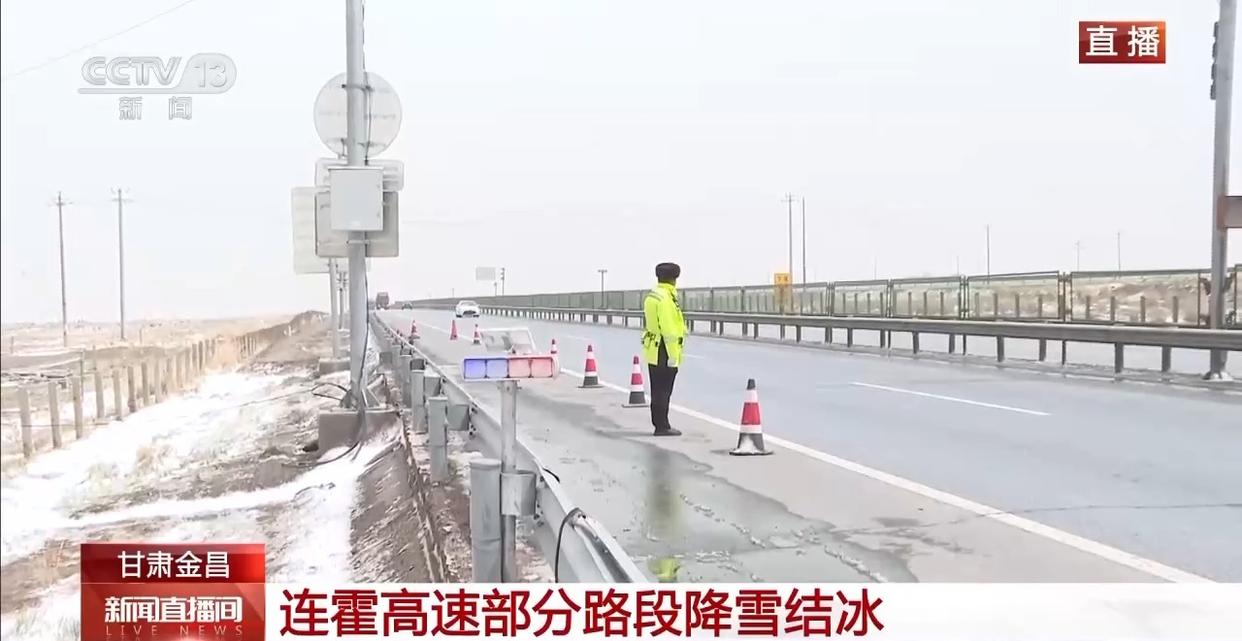 甘肃昨天(3日)开始的大风沙尘天气仍在持续,今天上午,张掖和金昌交界的连霍高速绣花庙路段还出现了降雪结冰。