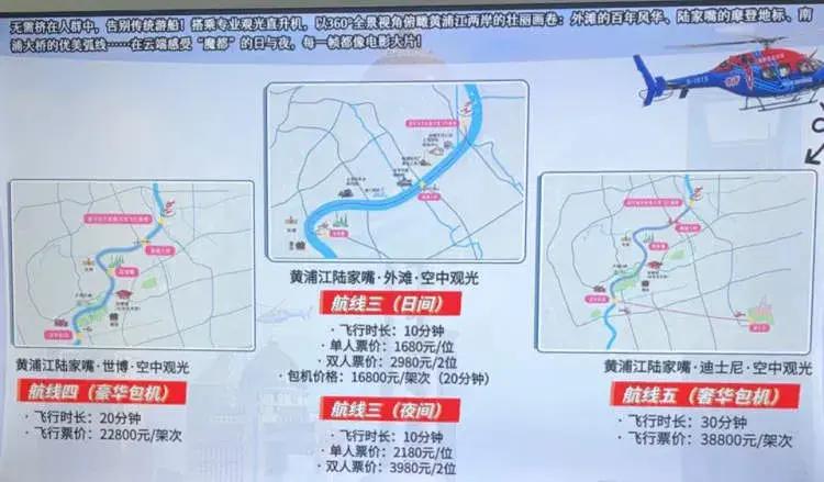 “直升飞机在复兴岛起飞后,很快就可以抵达黄浦江中心位置,可以尽可能多的游览黄浦江风光,也能降低成本、降低票价。”