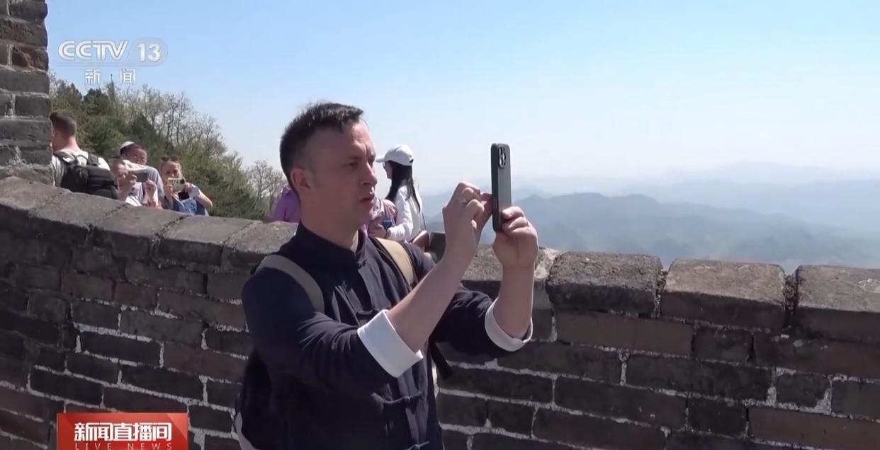 总台央视记者 刘璐璐:都说“China Travel”火爆,今天我们在慕田峪长城真真切切感受到了,周围随处可见外国游客的身影。他们来中国都想玩点啥?吃点啥?让我们跟着英国博主杰基一起在北京玩一天。