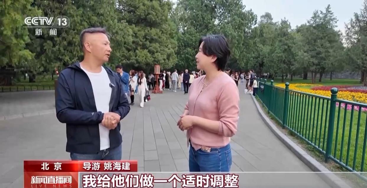 导游 姚海建:比如说今天我遇到的客人,他的英语不是很流利,我给他们介绍的时候,尽量把语速降低一点慢一点。比如说有孩子有老人,我就挑相对来说对小朋友更加友好的路线,我给他们做一个适时调整。