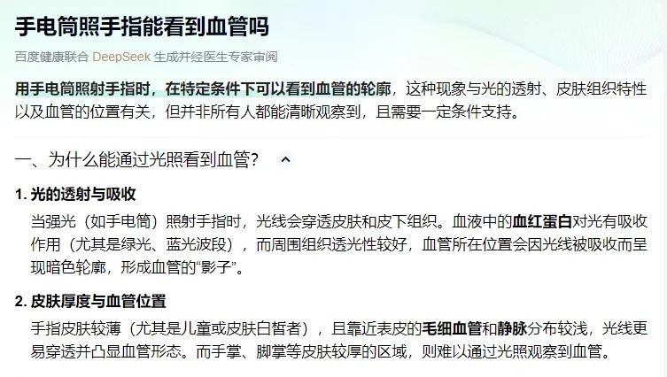 今年4月,重庆一位女生在社交平台晒出自己用手电筒照手上血管的照片,并配文“光穿过了我的手,发现了我另一个小心脏”。