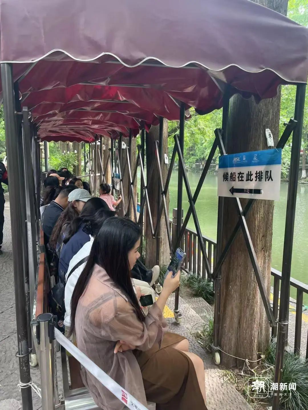 下午2点半,潮新闻记者又来到水上巴士的另一头坝子桥码头。果然,这里的队伍更长,排队时间在2.5小时左右。