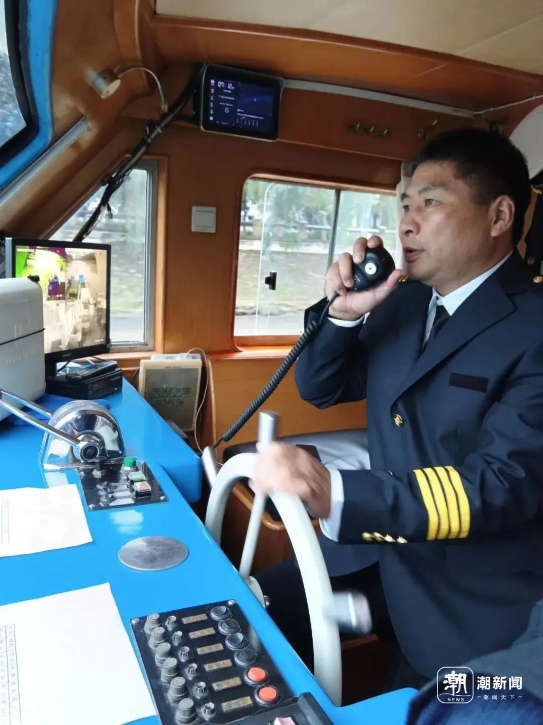 平时,方红建是在运河上开船,因为是节假日,日常负责水上巴士7号线的姑娘连轴转累坏了,他来顶一下。