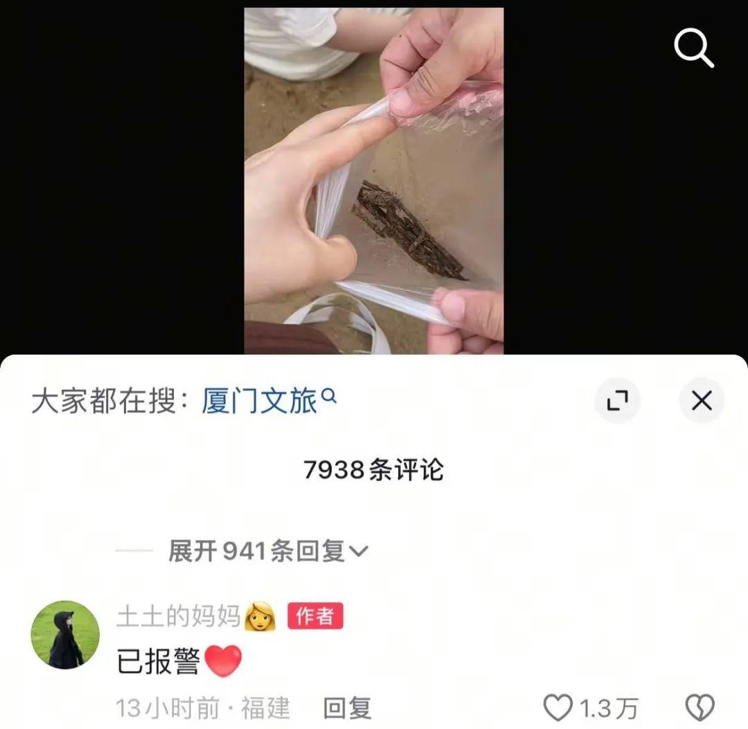 5月3日,福建厦门,一女子带孩子在沙滩上玩沙,短短二十几分钟就捡了小半兜生锈的铁钉。女子表示,不知道是不是人为,已经报警。踩到细铁钉或铁针,尤其是锈钉子、带泥土的钉子,最易患破伤风,须速去医院注射破伤风抗毒素。