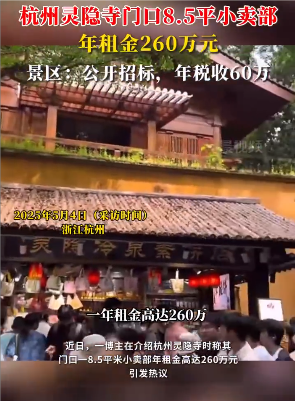 景区回应灵隐寺小卖部年租金260万:公开招标,年税收要求60万