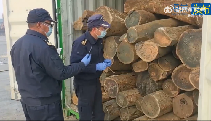 近日,广州海关所属佛山海关关员在对2批进口原木进行查验时,发现集装箱内壁附着不少蜘蛛网。经进一步检查,现场关员在集装箱内截获4只活体蜘蛛。