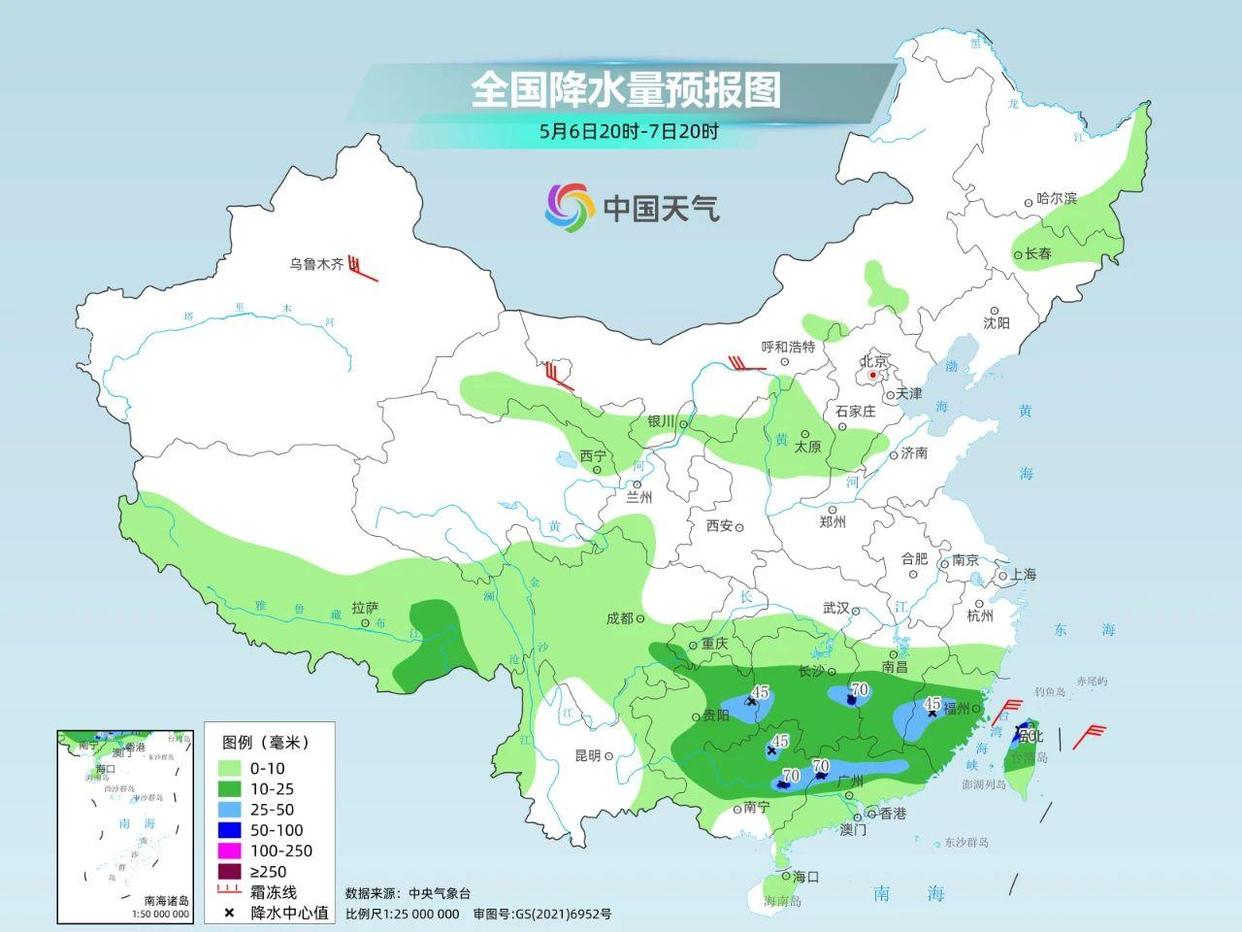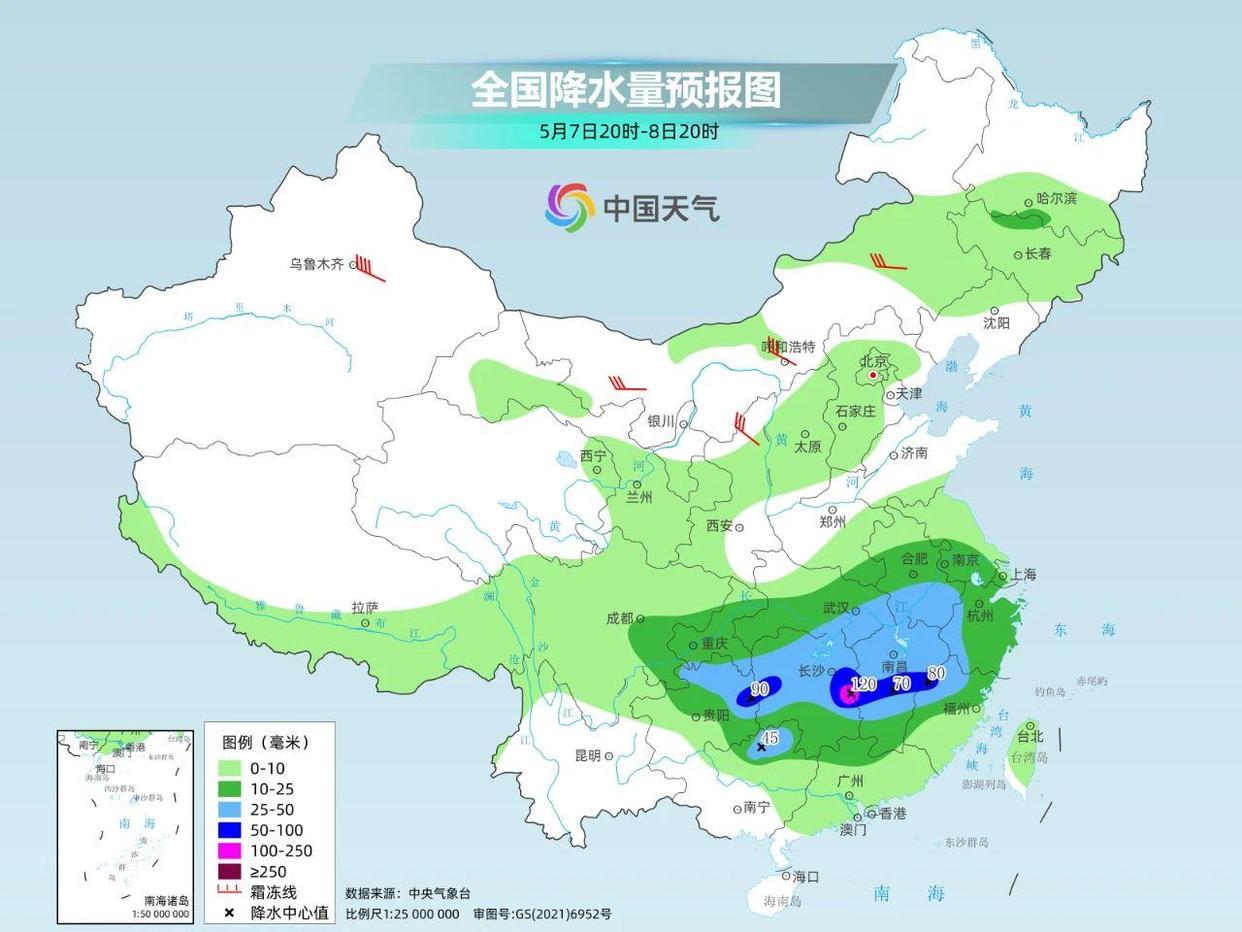 中央气象台预计,西南地区东部、江南、华南大部有大到暴雨,局部地区有大暴雨;上述地区累计降雨量有30至60毫米,贵州东南部、广西北部、广东北部、湖南南部、江西中南部、福建西部、浙江西南部等地有100至160毫米,局地超过200毫米。主要影响时段为8日白天至夜间。
