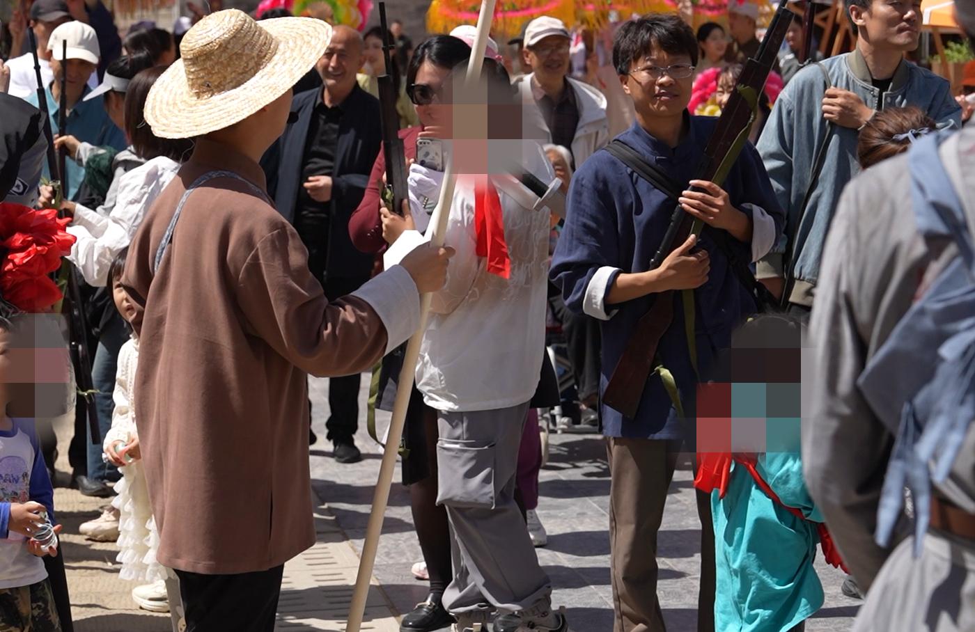 国小强表示,该活动是以1943年陕甘宁边区时期的大练兵为背景,也想通过这种方式增强游客们的参与感和互动感。“全程一共有七大篇章,包括入城仪式、欢迎战士进城、动员讲话、表彰大会等。”国小强称整个活动全程为四十五分钟,冲锋场景只是整体活动的一个环节。