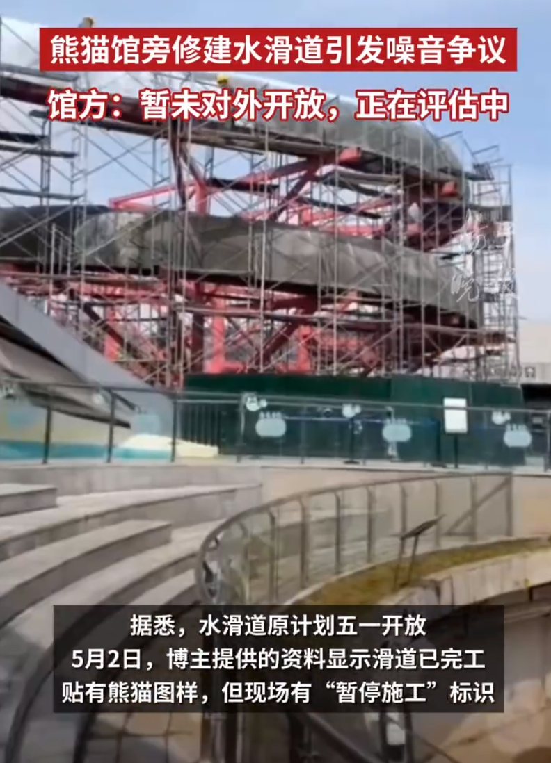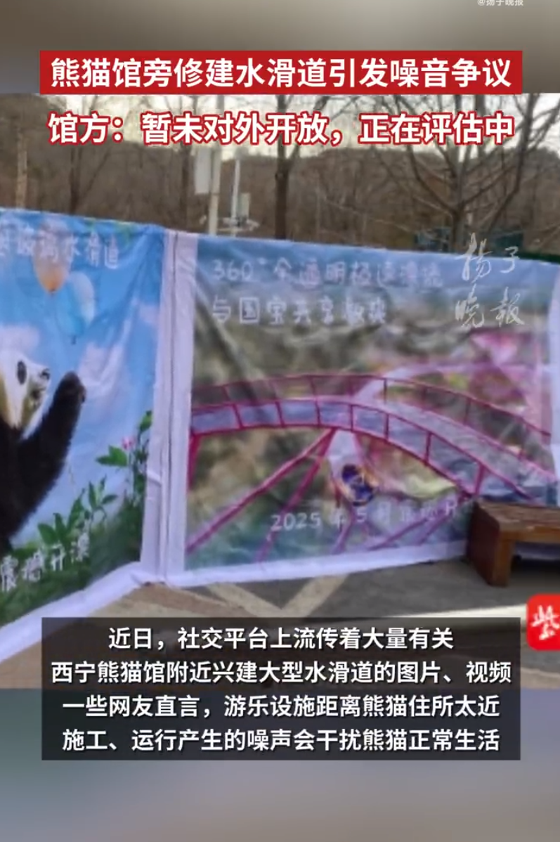 近日,有网友发文称,西宁熊猫馆在距离大熊猫室外活动场20米处修建水滑道,因其施工噪音大,现场无降噪隔音设施引发部分大熊猫爱好者质疑。西宁熊猫馆一位负责人告诉记者,项目为无动力游乐设施,运行过程中无机械噪音。同时会在现场设置静音提示牌,增派工作人员在滑道周边值守等。
