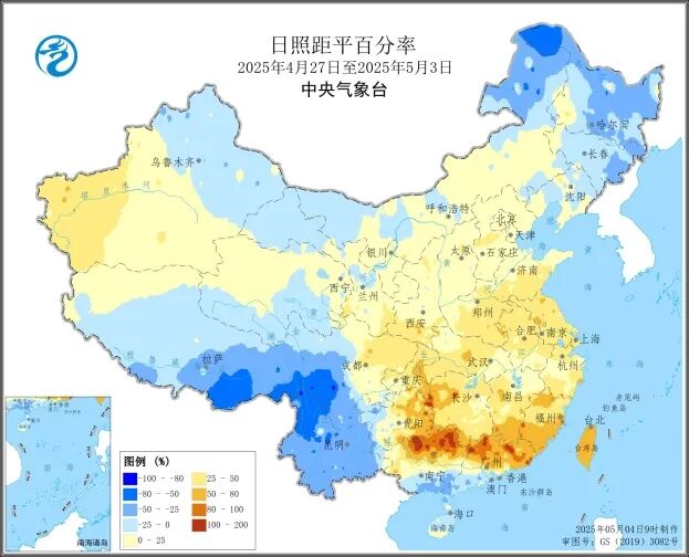 全国大部农区日照时数接近常年同期或偏多2至5成,华南北部、西南地区东部等地偏多5成至1倍,局地偏多1至2倍,黑龙江大部、吉林东部、云南和广西东南部偏少2至5成。