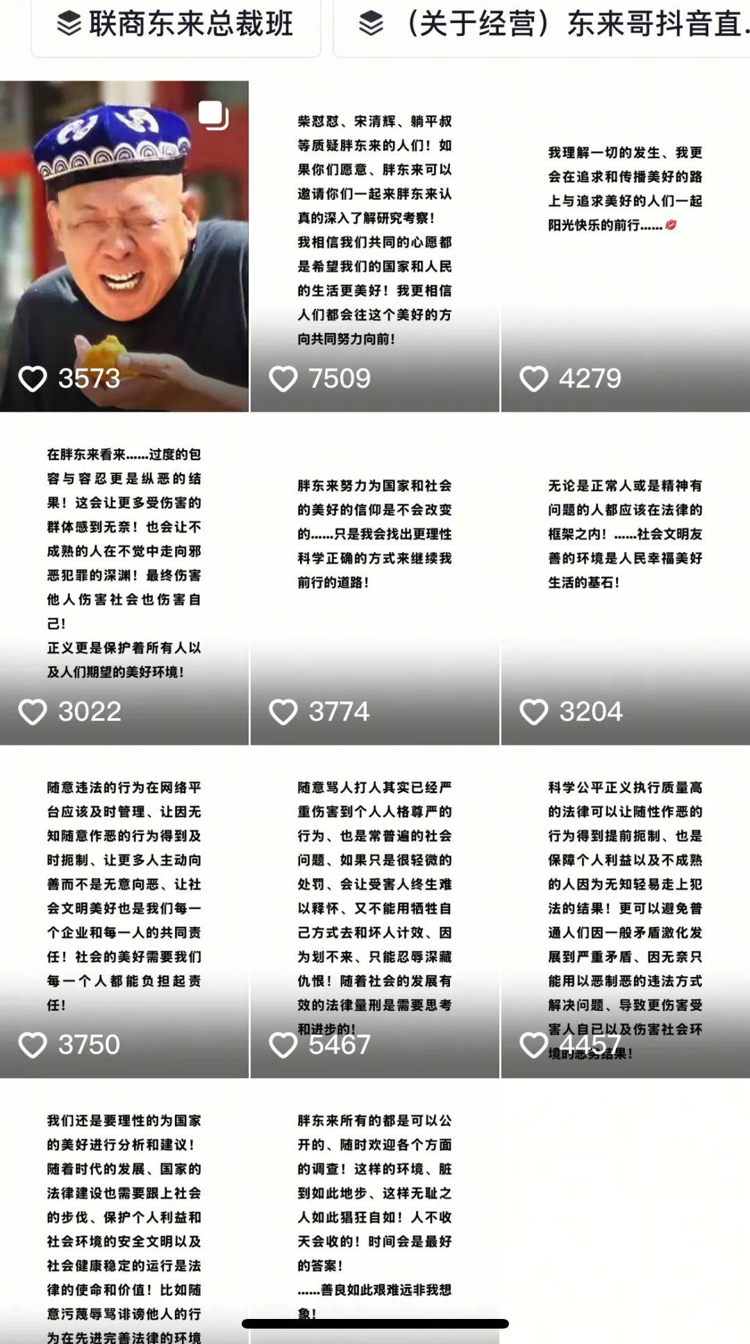 中午13点至14点之间,针对近期的玉石事件,胖东来创始人于东来在社交平台上连续发布10条内容回应。