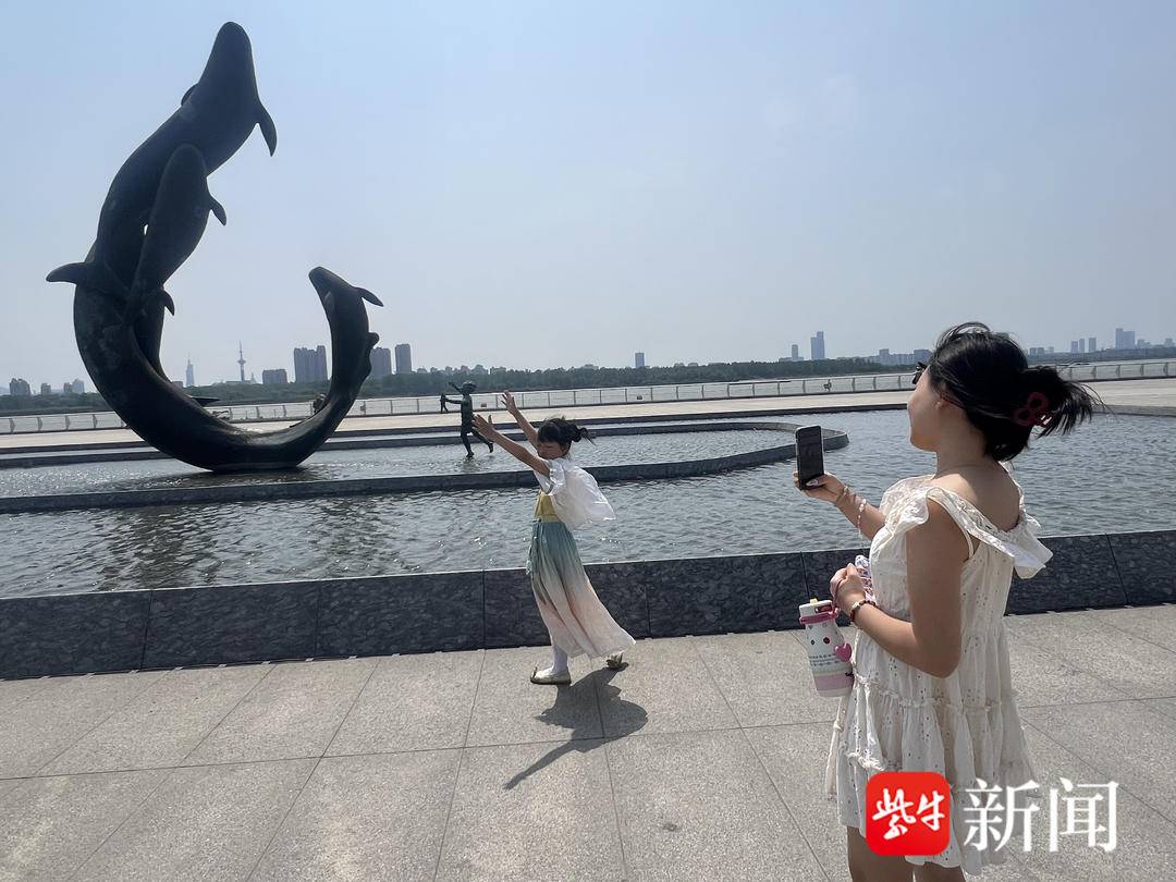 扬子晚报网5月4日讯(记者 薄云峰)“这个就是长江江豚的雕像,站在江边,和江豚雕像来张合影吧!”4日是五一长假的第四天,一些南京市民在家门口逛逛,感受惬意放松的假日时光。