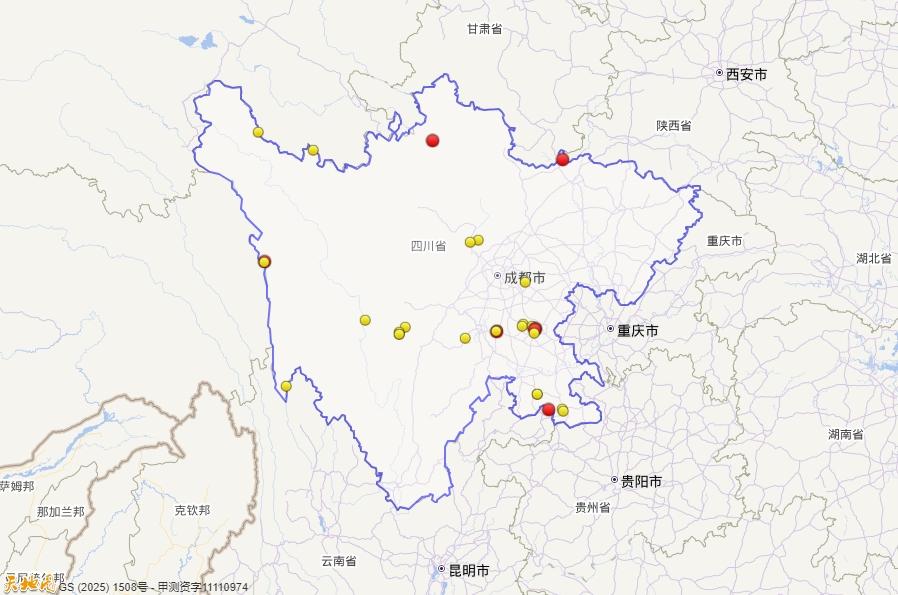 2025年以来(截至4月30日)四川三级地震活动分布图(四级以上红色标注)