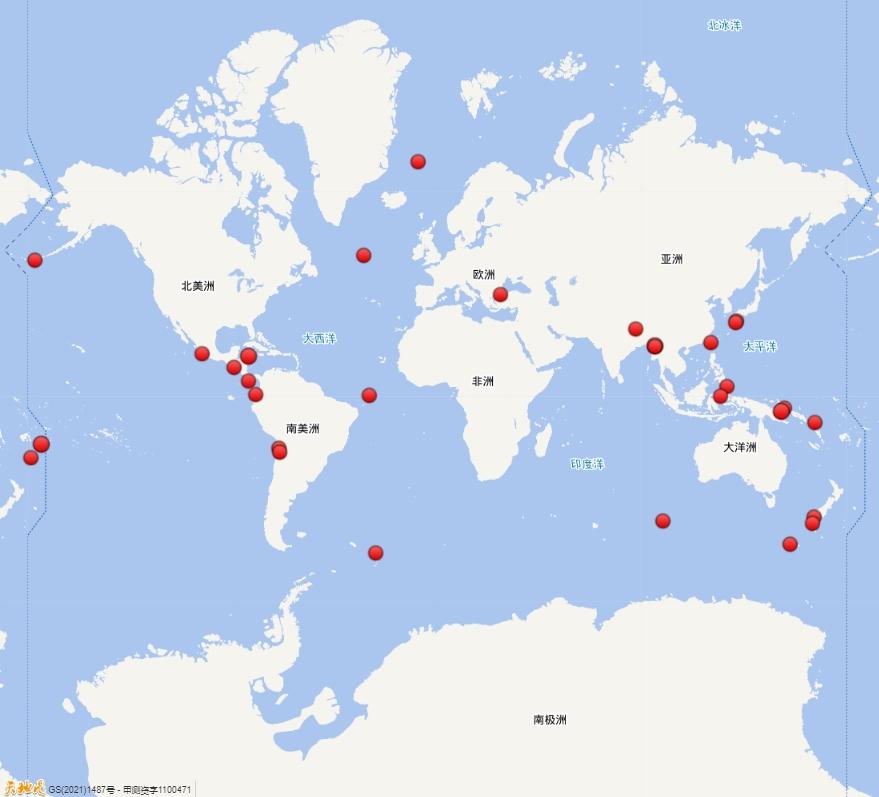 2025年以来(截至4月30日)全球六级地震活动分布图