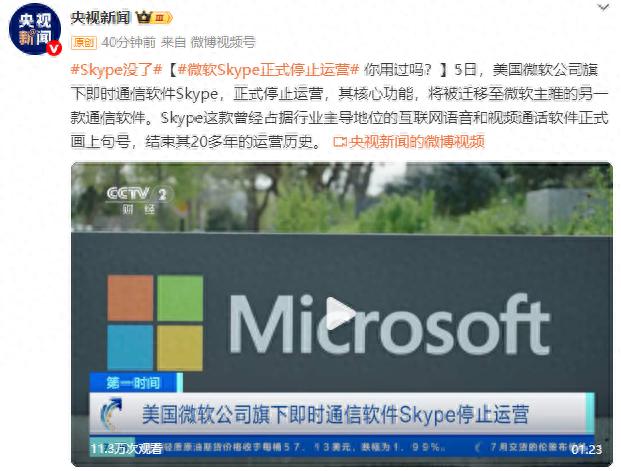 据央视新闻,5日,美国微软公司旗下即时通信软件Skype,正式停止运营,其核心功能,将被迁移至微软主推的另一款通信软件。