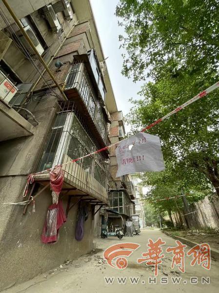 5月6日上午,接到居民反映后,华商报大风新闻记者来到西北有色地质研究院生活区,在小区最里面的3号楼一单元楼下看到,阳台下方位置拉着警戒线,地面上还有一些残留的墙体碎块。向楼上望去,各家都给阳台封了窗户,两侧半截砖墙应是自行垒砌。西户顶楼的5楼和4楼封阳台的窗户均不见踪影,且5楼窗户下的墙体整个不见了,东侧的上部分砖墙也已消失,西侧的砖墙上还挂着燃气热水器。4楼则主要是窗户坠落,几侧墙体还在。3楼阳台窗户玻璃上能看到明显裂纹,3楼和2楼窗户上的顶棚也有损坏。