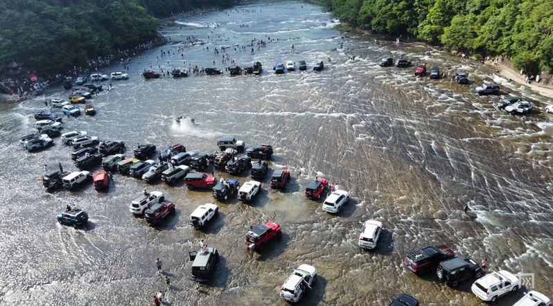 数十辆越野车聚集在河床上(活动现场照片 图源网友 央广网发)