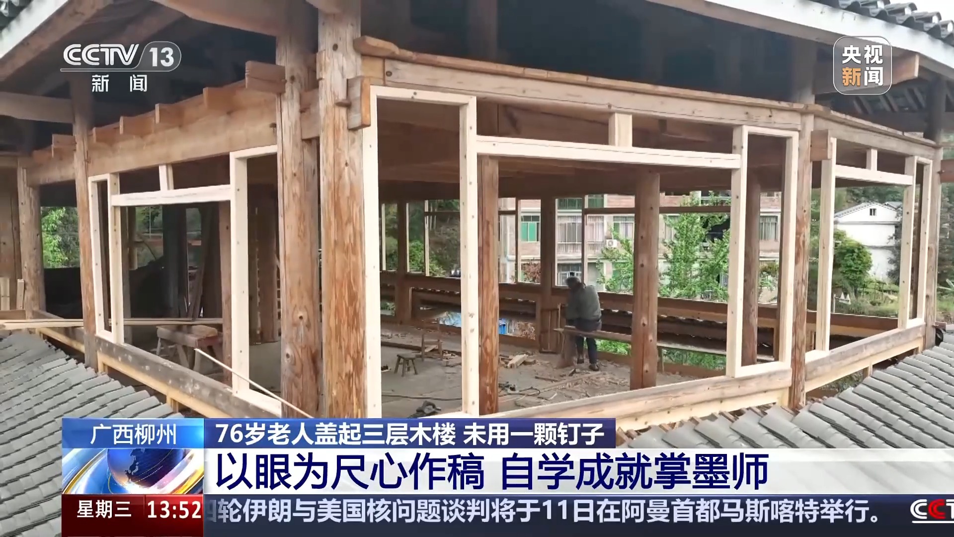 在广西柳州三江侗族自治县,76岁的老人石善章,搭建出了一座三层的无钉木楼。它最令人叫绝的就是:没有使用一颗钉子。那么,这座无钉木楼是如何建起来的呢?