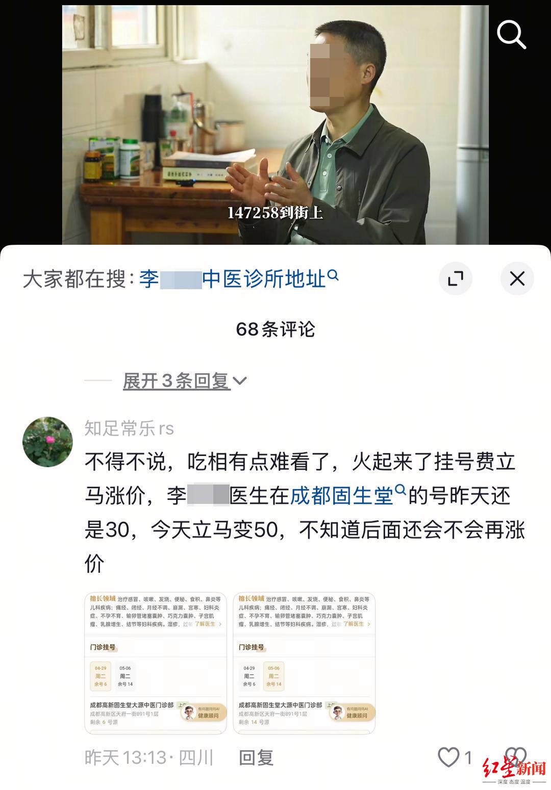 红星新闻记者看到,视频发出多日后,评论区已不再仅是赞扬声一片,而是充斥着“剧本拍摄”,“趁机调高挂号费,从30涨到50”“吃相难看”等质疑。