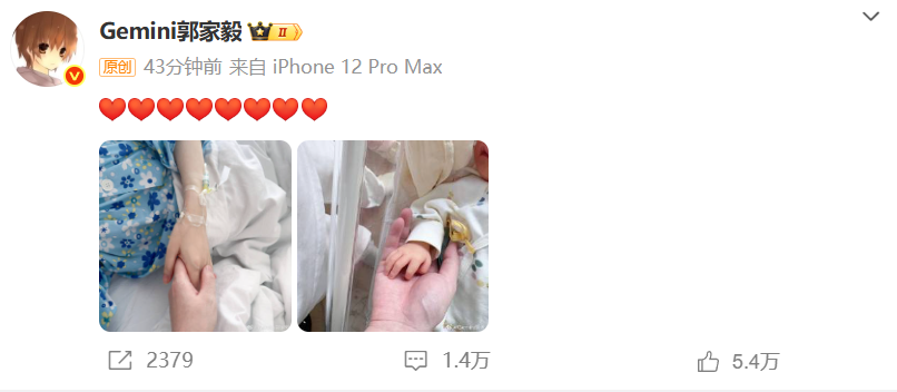 5月7日晚间,Gemini郭家毅通过社交媒体宣布孩子出生,并透露“母子平安”,大量粉丝及电竞圈人士送上祝福,随后#Gemini当爸# 迅速冲上微博热搜。