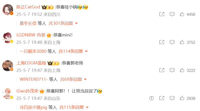粉丝通过微博话题#Gemini当爸#集中送上祝福,称其为“小鹌鹑”,并自称“云ee(姨姨)”或“云舅舅”。