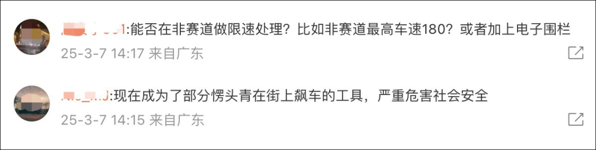 值得一提的是,3月7日,在雷军微博的评论区,有部分网友留言喊话雷总,希望小米能够限制一下小米SU7 Ultra在公共道路上的动力。