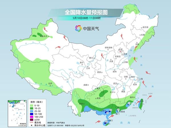 明天,华北大部、黄淮东部、江南南部、华南等地部分地区有中到大雨,其中,河北中部、北京西南部、广西东北部、广东西北部等地部分地区有暴雨。